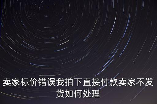 賣家標(biāo)價(jià)錯(cuò)誤我拍下直接付款賣家不發(fā)貨如何處理按照法律上來(lái)解釋,賣家給你退款結(jié)束交易了事.這個(gè)不會(huì)因?yàn)橘u家標(biāo)錯(cuò)了價(jià)格你拍下了...[詳細(xì)]